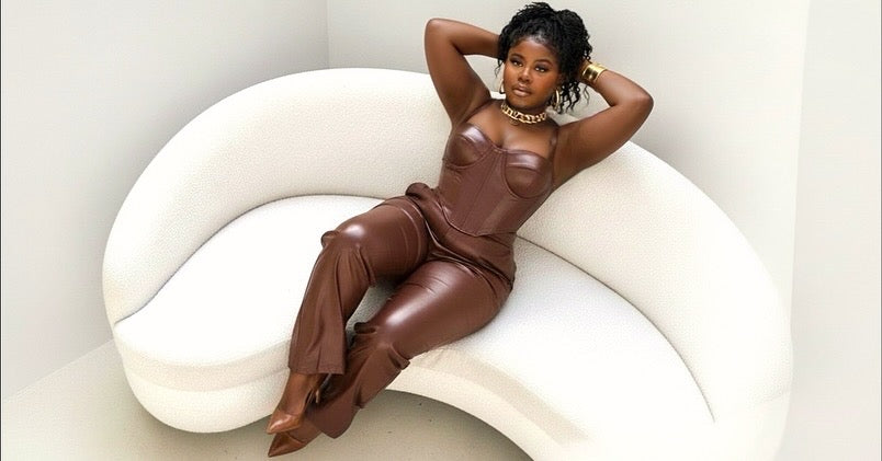 Turn heads in the Cocoa Luxe Set, a rich chocolate-brown faux leather look that defines confidence and class. Designed with a sleek corset-style top and flattering high-waist pants, this set hugs your curves in all the right places while keeping you effortlessly chic. Perfect for a night out, dinner date, or your next content shoot — all you need to bring is your confidence.