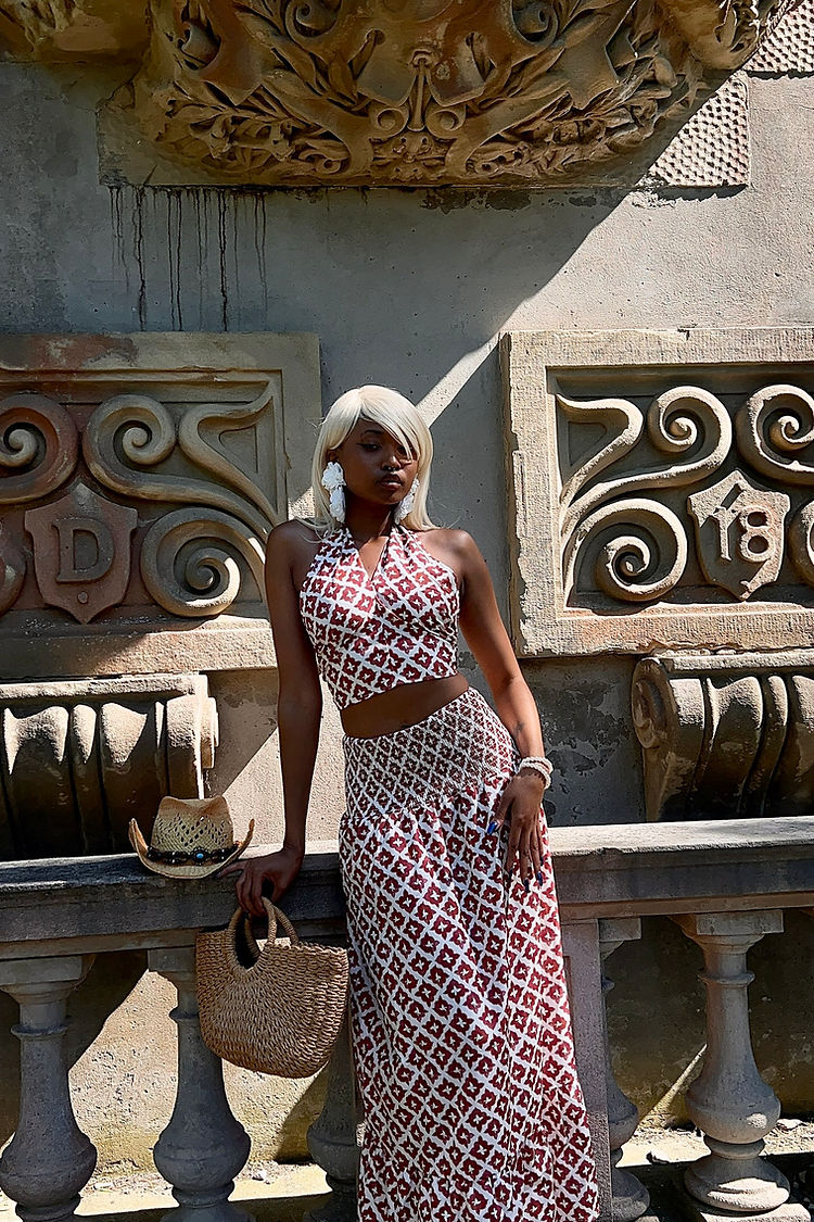 Elevate your summer statement with the Éline Set – a printed two-piece made to turn heads. The strapless crop top hugs just right, while the matching skirt flows effortlessly with every step. Bold yet refined, this look brings effortless elegance with a touch of edge.