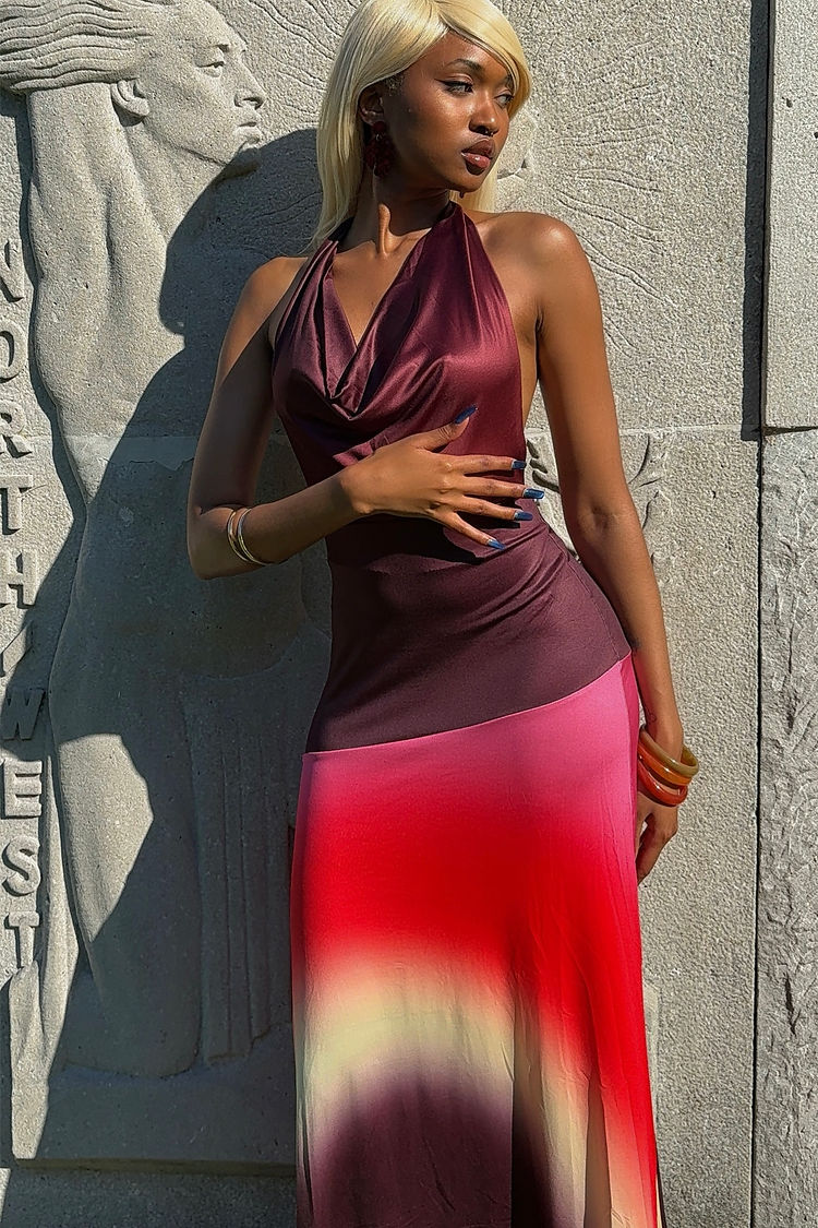SOLÉNA – Ombré Satin Cowl Maxi Dress